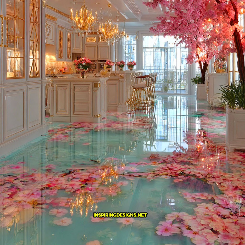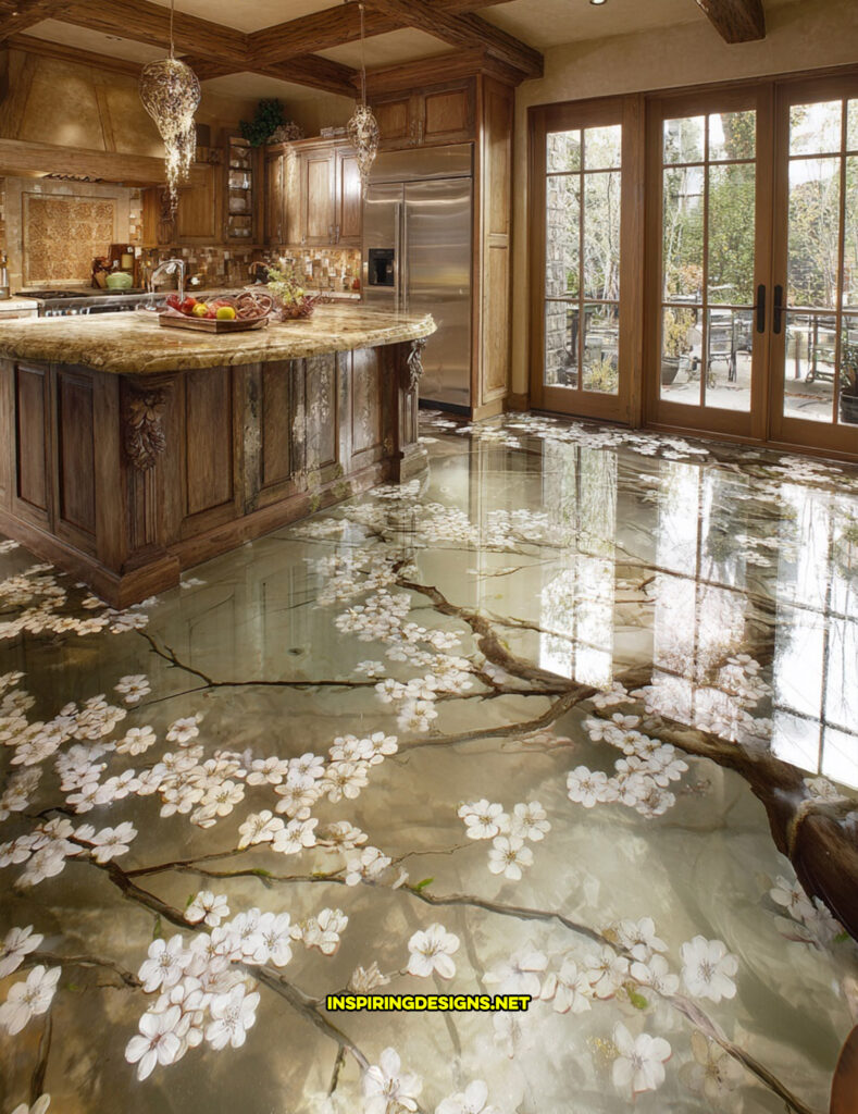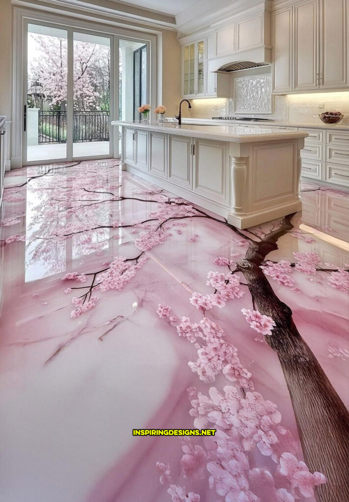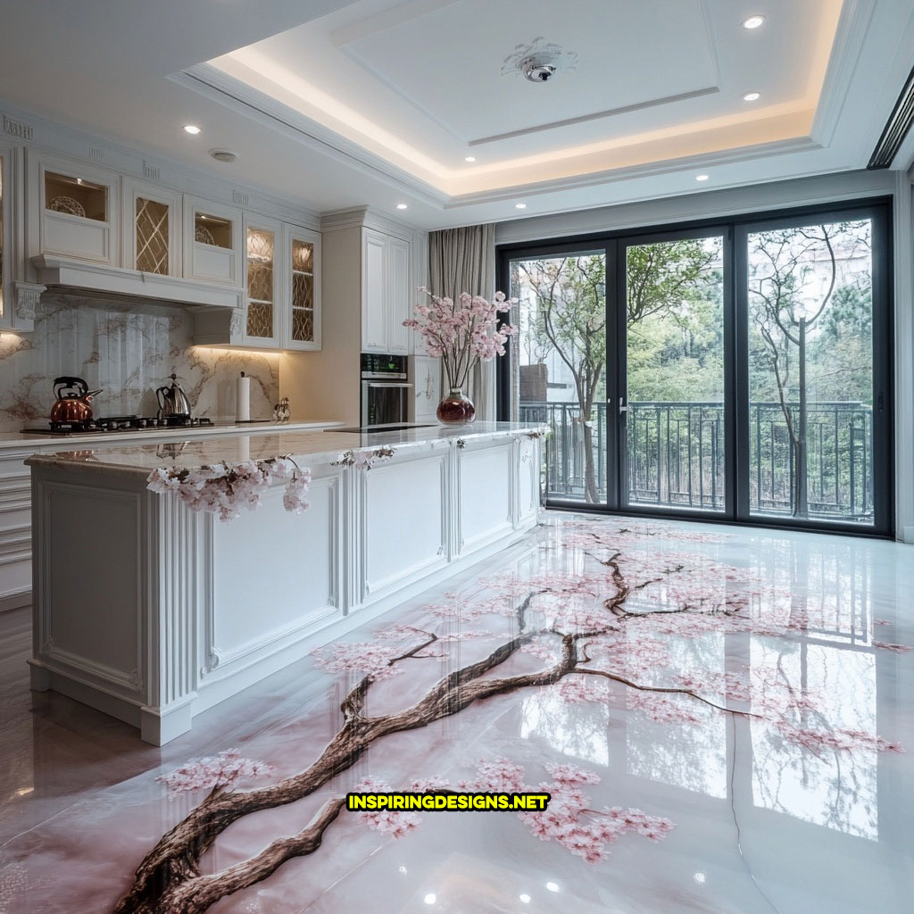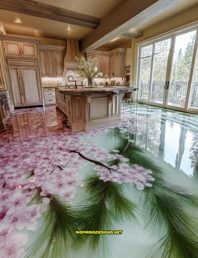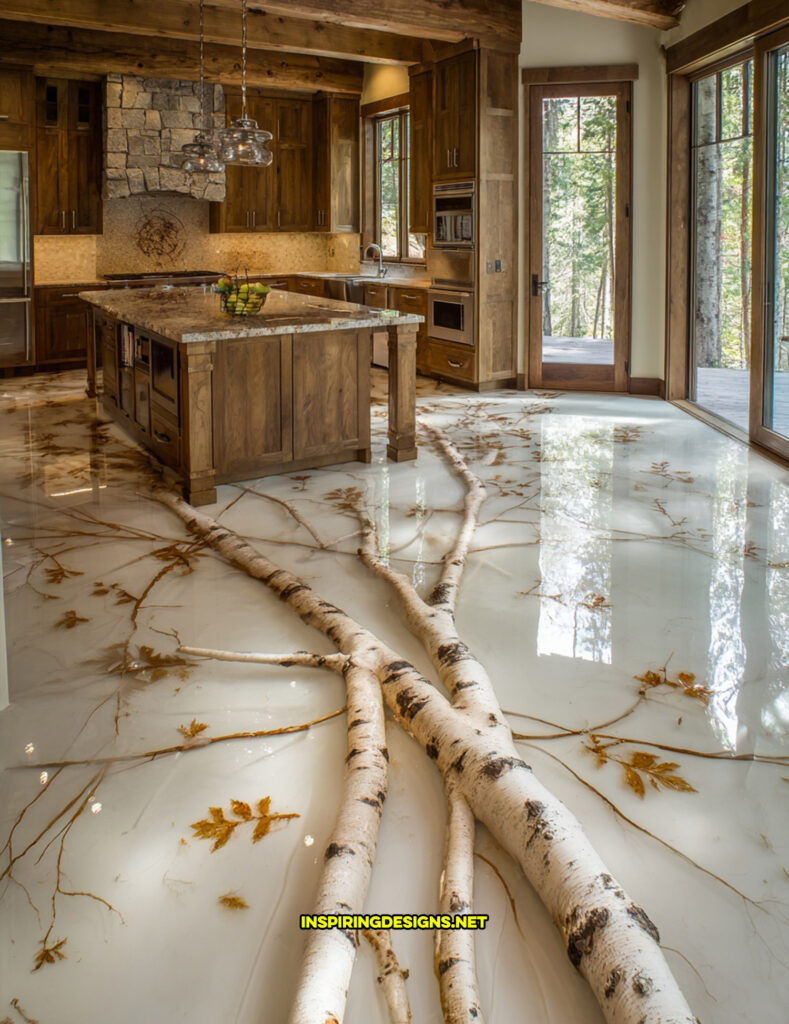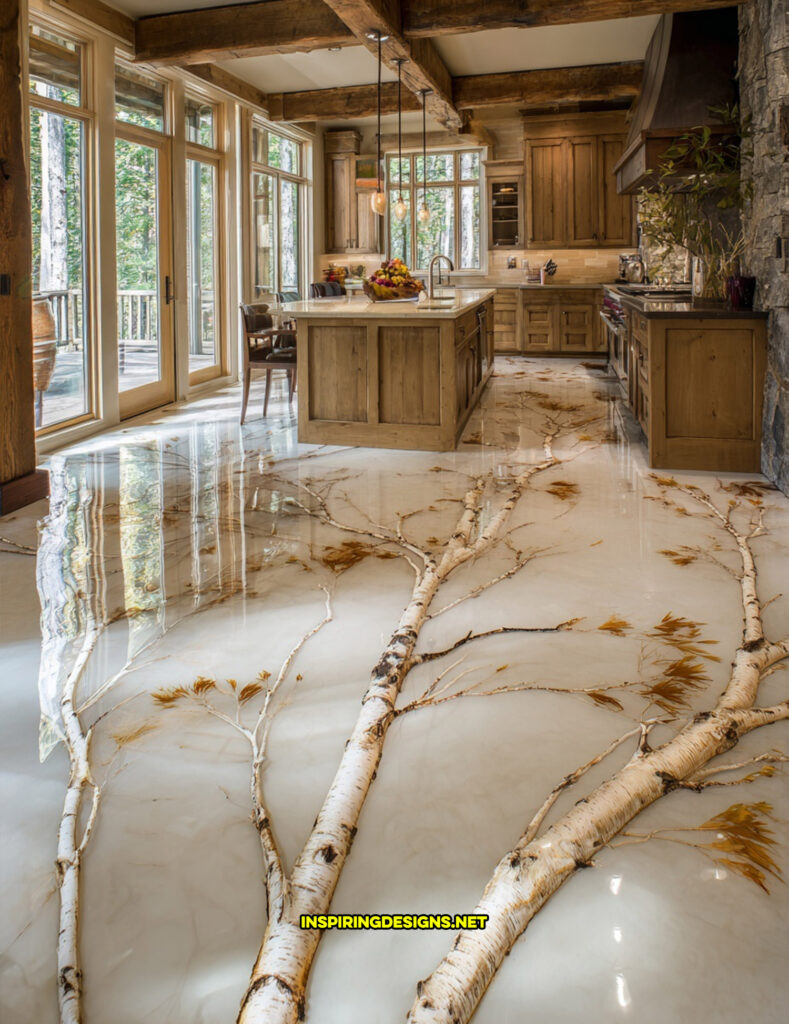 There is something irresistible about a floor that looks like it wandered in from a tranquil woodland. Epoxy tree flooring takes that feeling and freezes it into a glass-smooth surface that can live in kitchens, baths, spas, entryways, and showpiece living rooms. Imagine pale birch branches with tiny golden leaves, pine boughs fanning out beneath a soft green wash, or delicate cherry blossoms drifting across a creamy pink background. That is the magic of epoxy tree floors.
