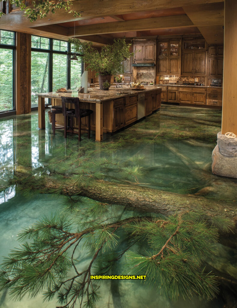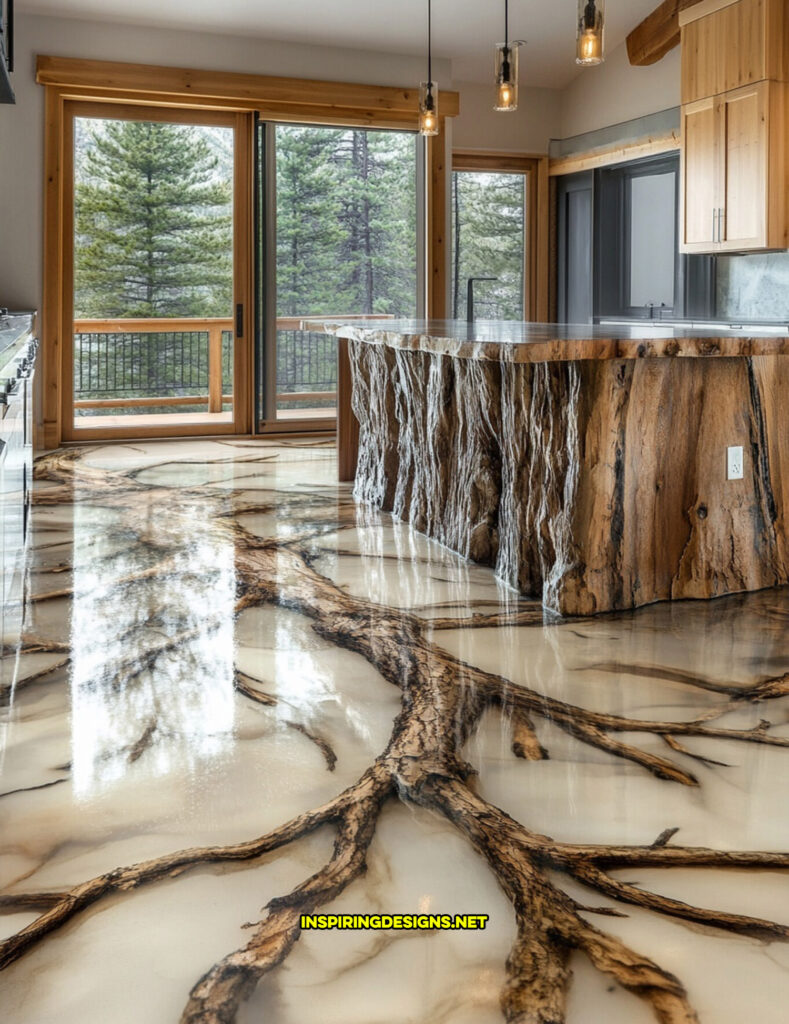 - Polished concrete is industrial-chic and durable, yet lacks the 3D artwork and water-clear depth of epoxy tree flooring.